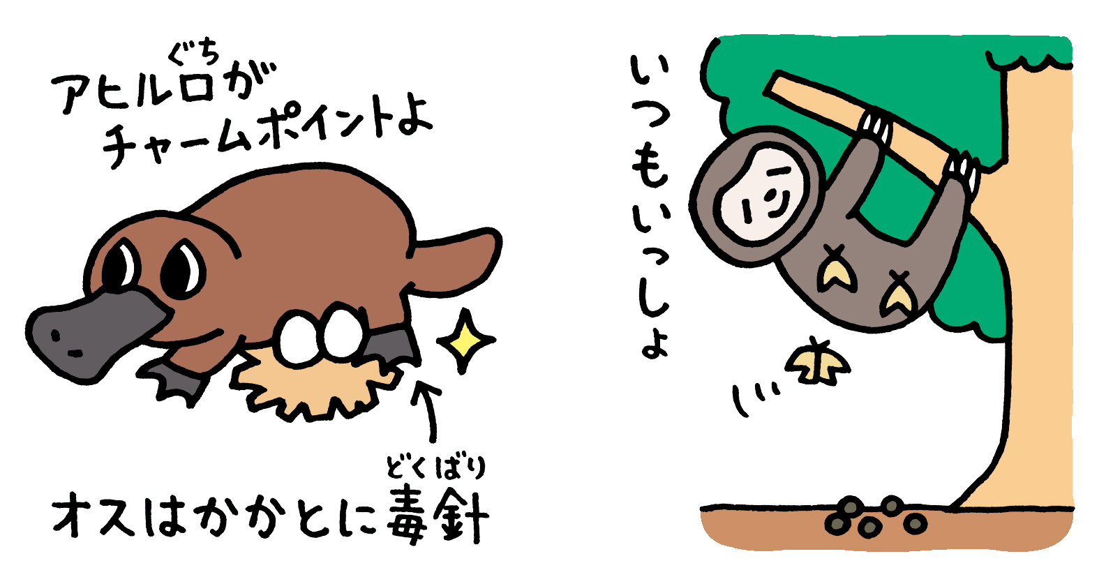 カモノハシとナマケモノの特徴について描きました。