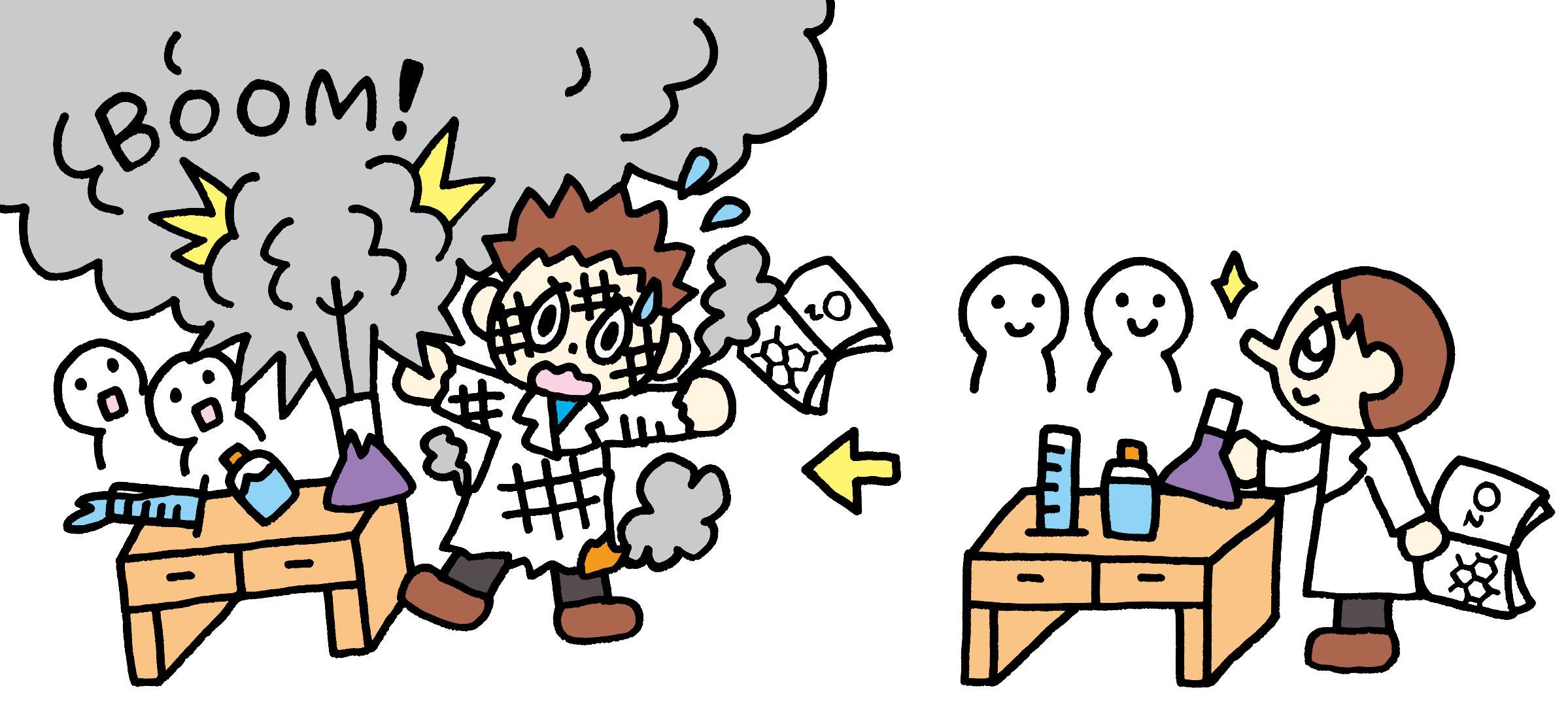 ことわざ「生兵法は大怪我の元」を表す状況を描きました。