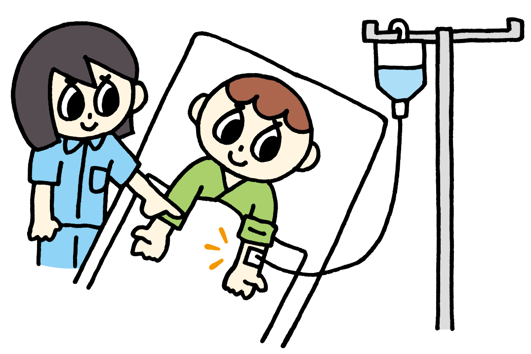 看護師さんが点滴の状態をチェックしている様子を描きました。