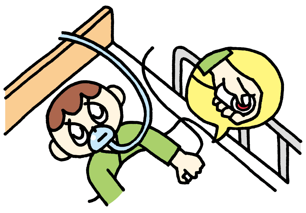 患者さんがナースコールを握ったまま眠る様子を描きました。