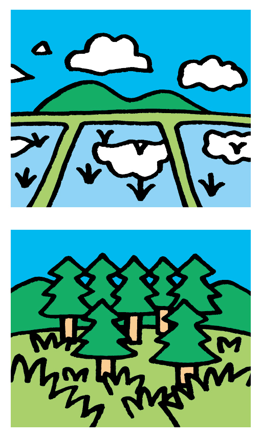 農地と森林を描きました。