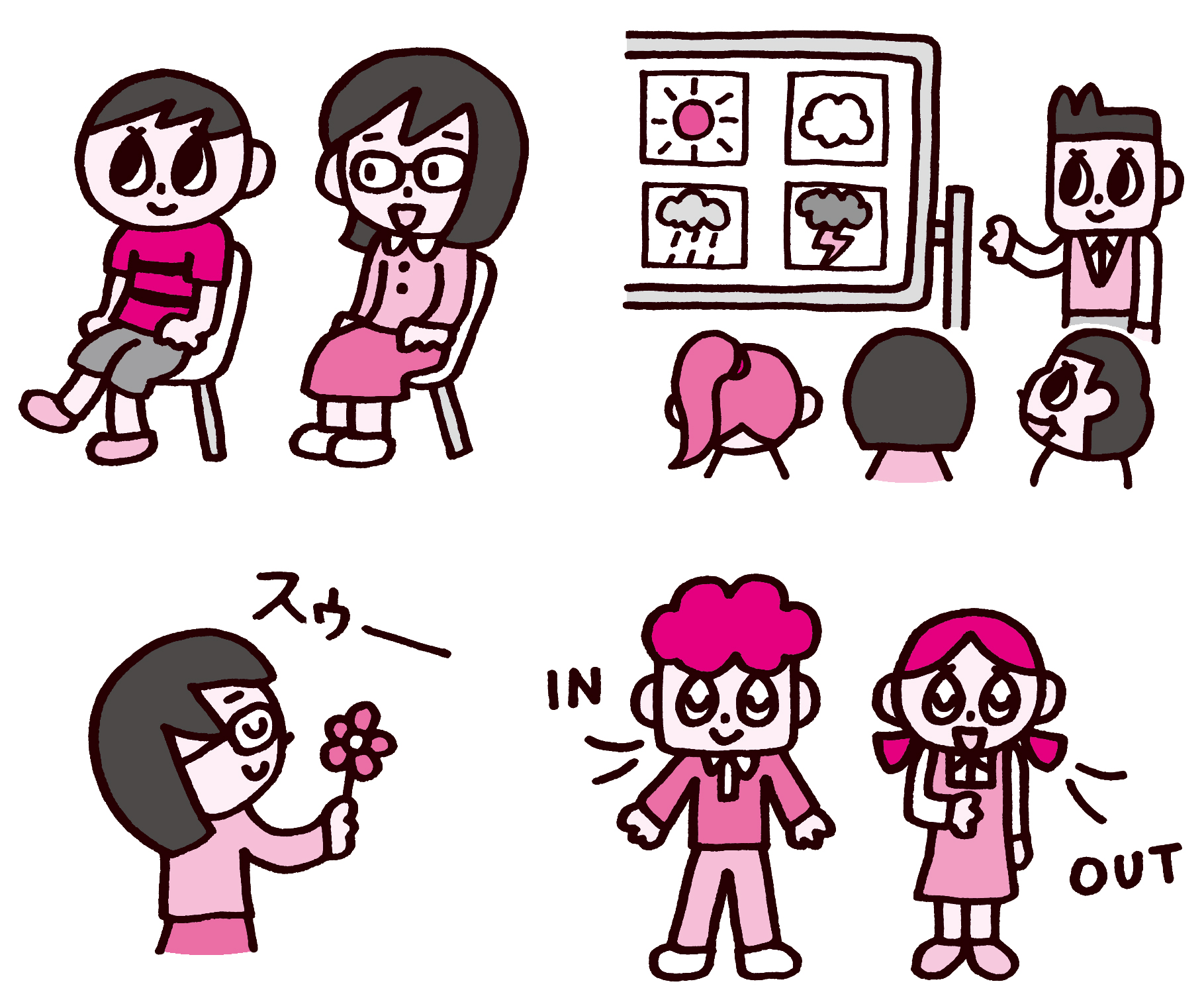 学事出版「感情の知性(EQ)を伸ばす 学校と家庭でマインドフルネス! 1分からこころの幸せ・安心を育む63のワーク」カットイラスト